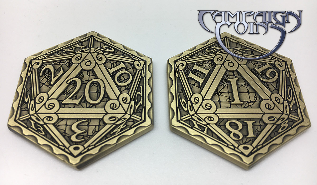 Stunning metal D20 coins with serious heft. For adventurers everywhere.