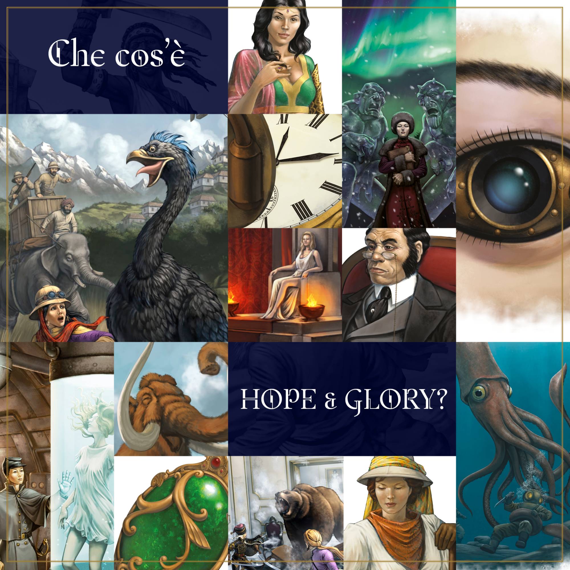 Frutto di tre anni di lavoro e ricerca, il mondo di Hope & Glory è vasto e dettagliato, e permette di giocare avventure esotiche in templi perduti nella giungla, intrighi spionistici contro gli agenti dello Zar, battute di caccia alla tigre dai denti a sciabola, vaste battaglie contro i cosacchi neanderthal al soldo della corona russa, indagini paranormali e ardite imprese scientifiche.