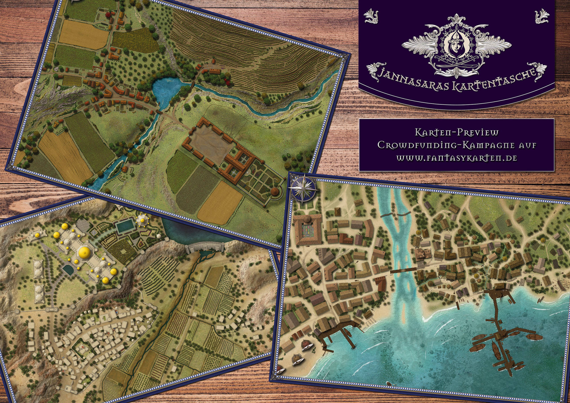 Als wir zu bloggen anfingen, beschlossen wir auch, gemeinsam Rollenspielinhalte für andere zu gestalten. Damit war die Idee für Jannasaras Kartentasche geboren. Die soll irgendwann noch komplexere Karten und eine komplette Welt hervorbringen. Innerhalb unserer Arbeitsteilung liegt mein Schwerpunkt bei der Planung, dem Schreiben der Texte, der historischen Recherche und dem Layout. Damit ergänzen wir uns bestens, da wir zwar einige Überschneidungen haben, aber auch völlig unterschiedliches Wissen einbringen können.