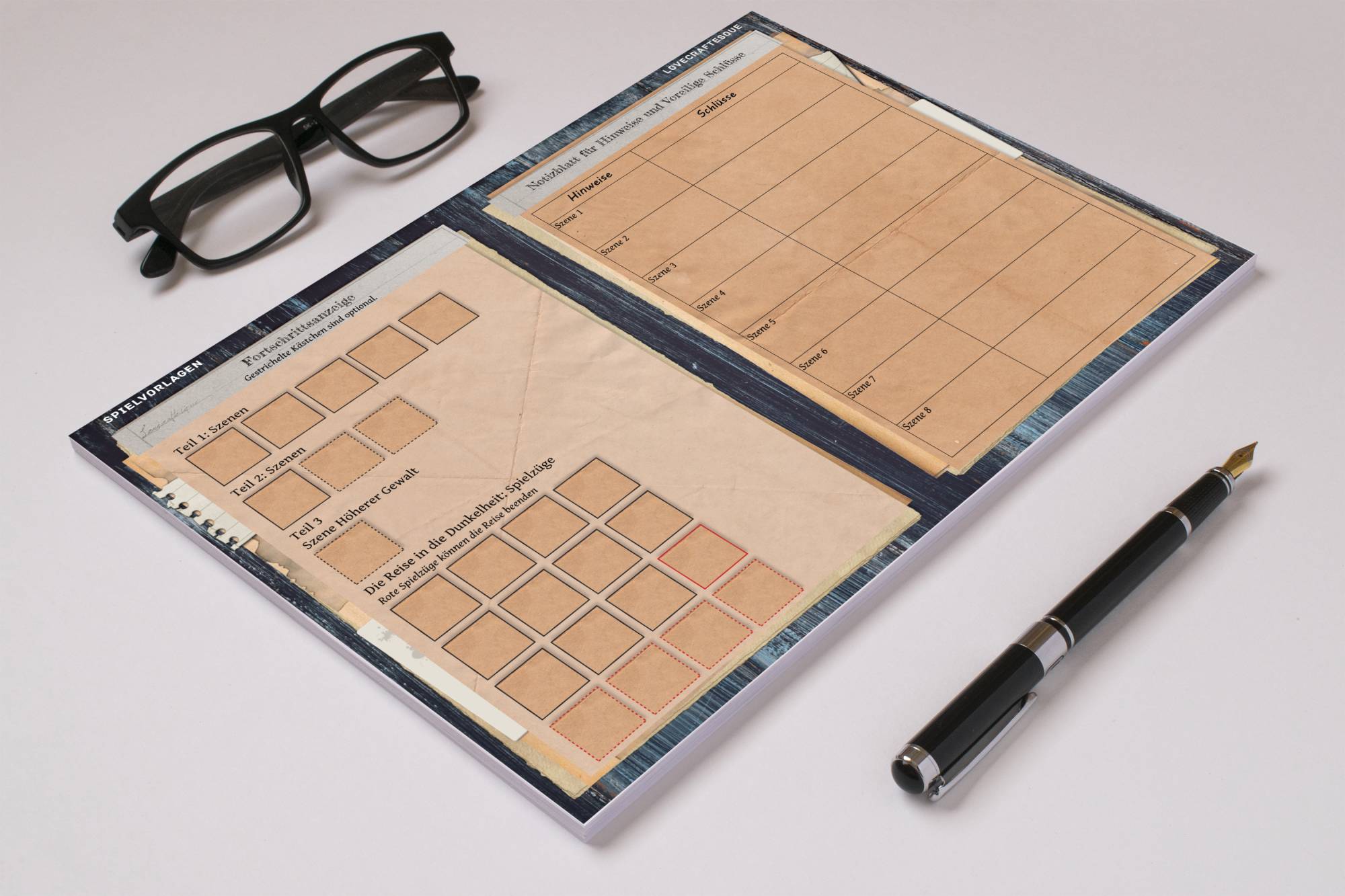 Sie können nun ein Set von drei Abreißblöcken für Ihre Mitschriften erwerben. Darauf können Details zur Hauptfigur, dem Spielstand und andere Informationen stilvoll dokumentiert werden.