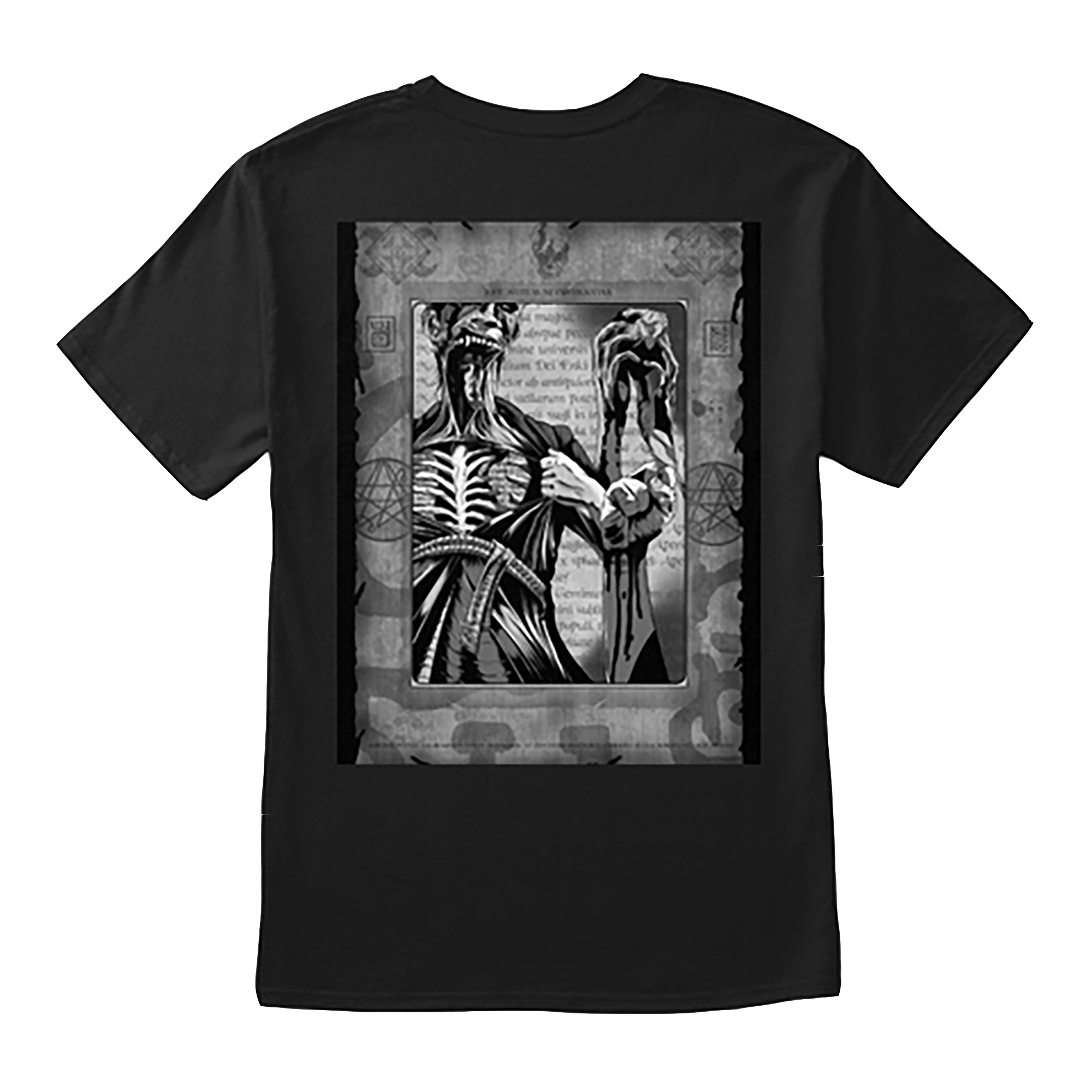False Life T shirt displays the actual page from the spellbook on the back, and the symbol from the book on the front chest area.