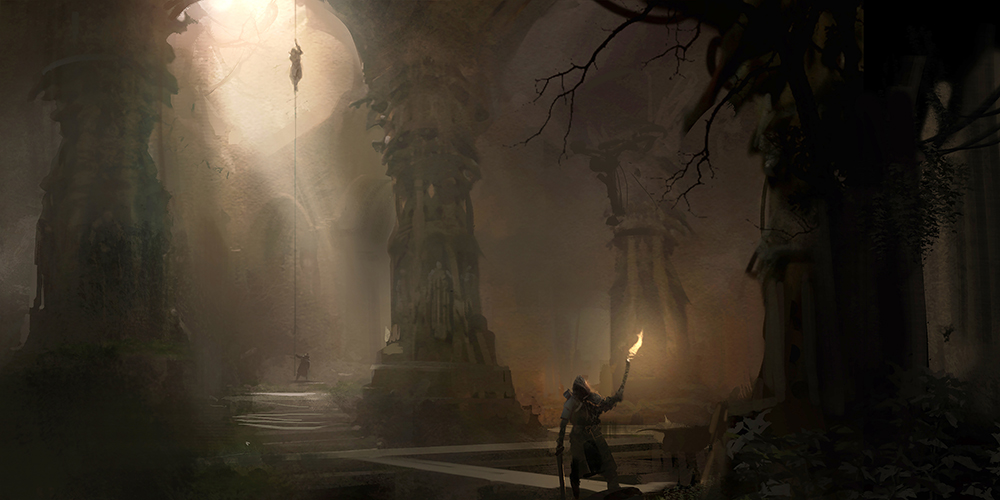 Un cri de douleur, déchirant la brume matinale, lui fit tourner son regard vers le sud. Cela ne ressemblait pas à l’un des morts récemment réveillés, ou l'une des créatures de l’Outremonde hantant la ville souterraine en ruine. Un humain ? Il savait qu'ils arrivaient, attirés par les richesses de Symbar, trop avides pour être arrêtés par des avertissements ou des menaces. Il laissa tomber la feuille, encocha une flèche et se dirigea vers la source du cri.