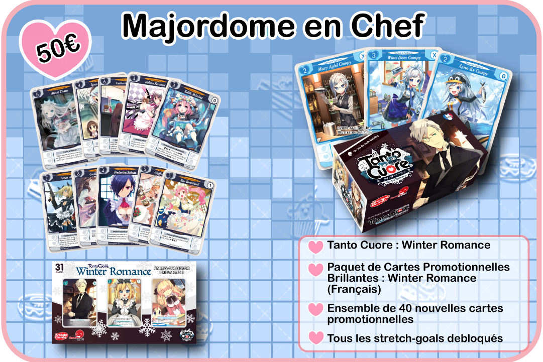 Ce niveau vous permet de recevoir une copie de Tanto Cuore : Winter Romance et l’ensemble de 40 nouvelles cartes promotionnelles, et de devenir éligible à tous les stretch goals.