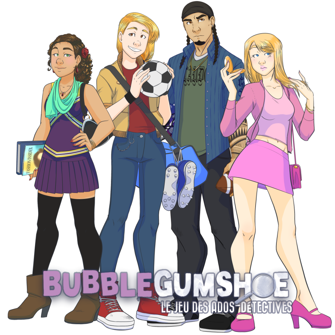 Bubblegumshoe est un jeu d’enquête qui propose de jouer des ados, plus précisément des apprenties détectives, des journalistes du journal du collège ou simples curieuses, dans notre monde moderne sans aucune trace de fantastique ou de surnaturel.