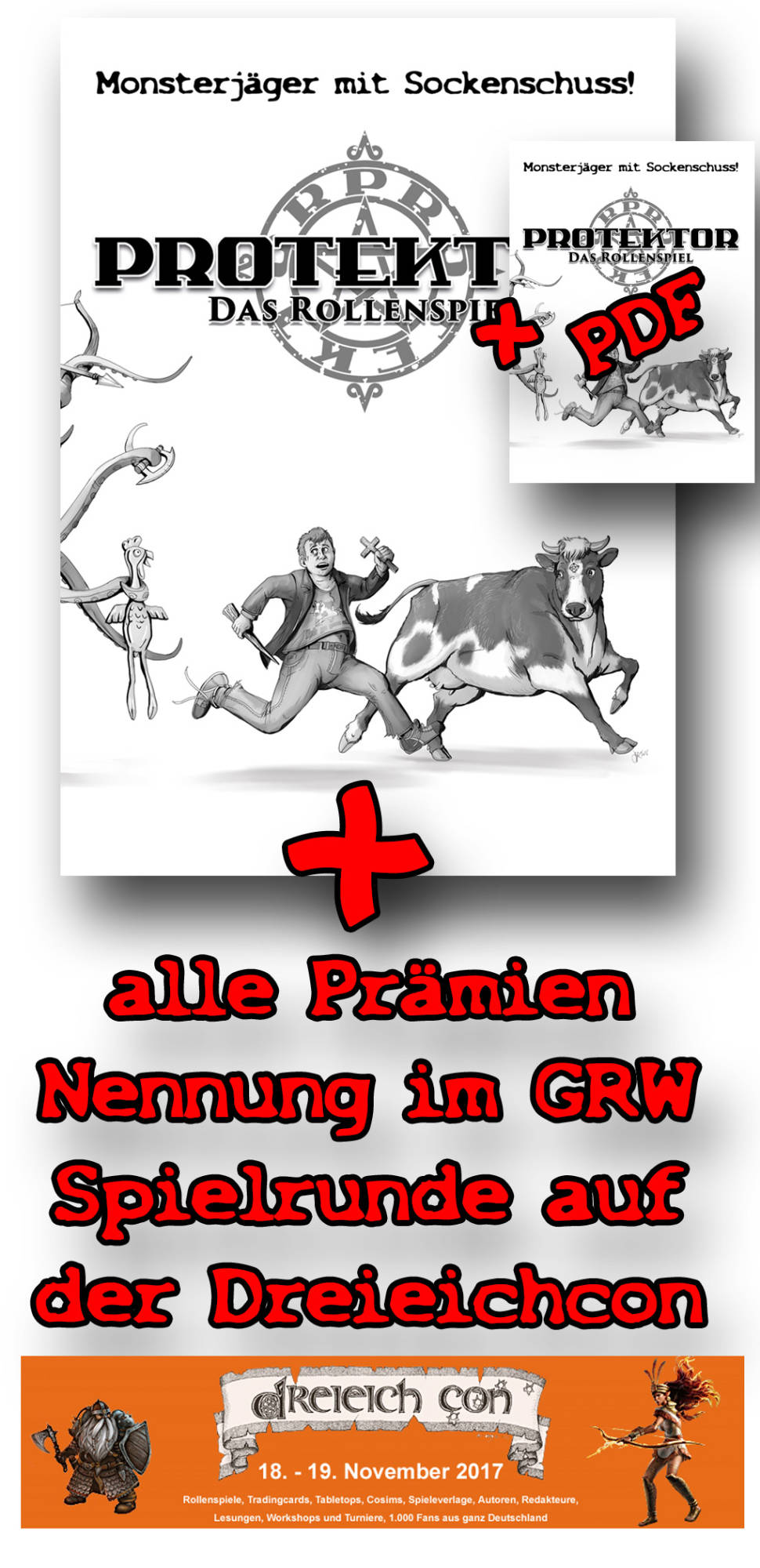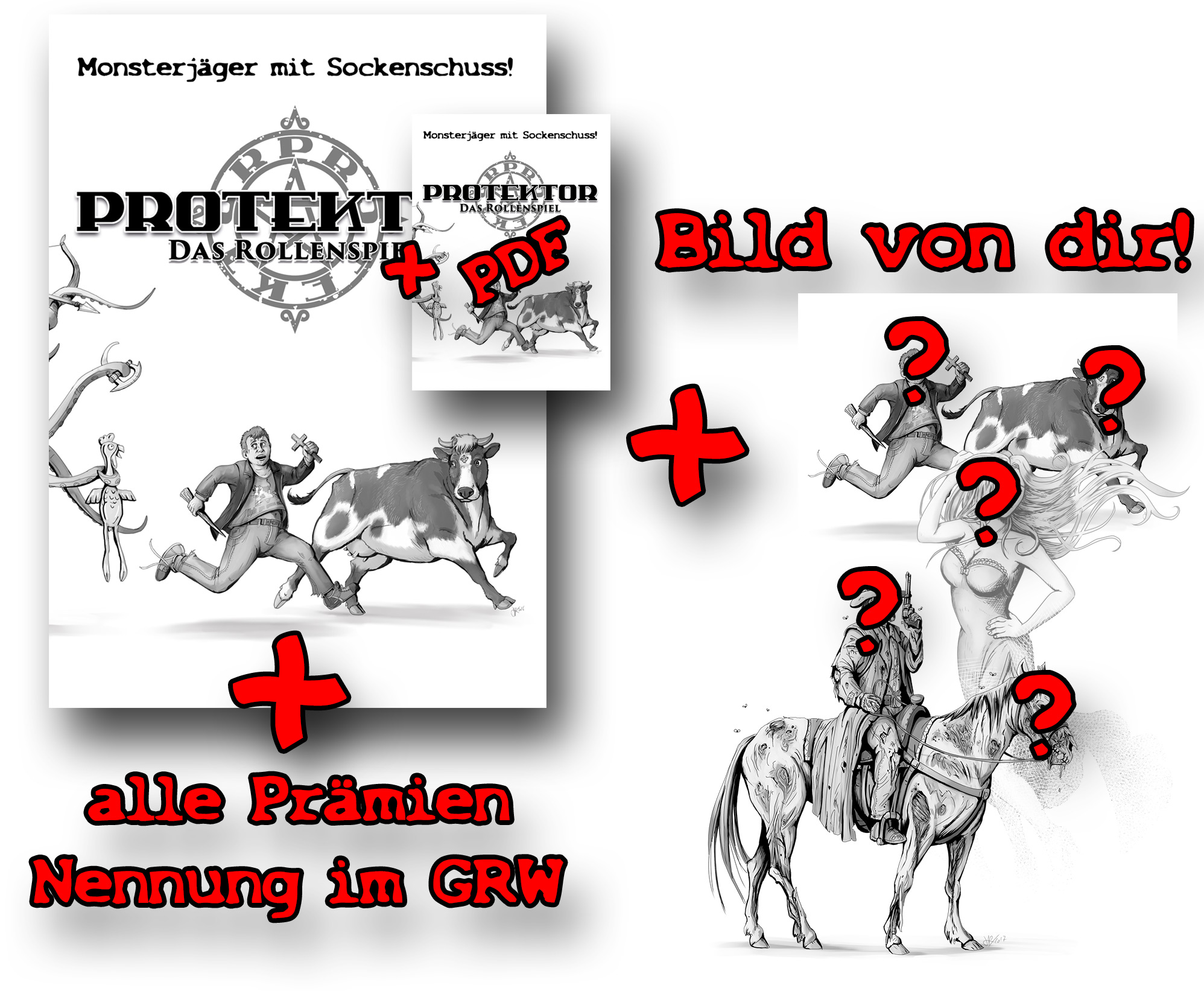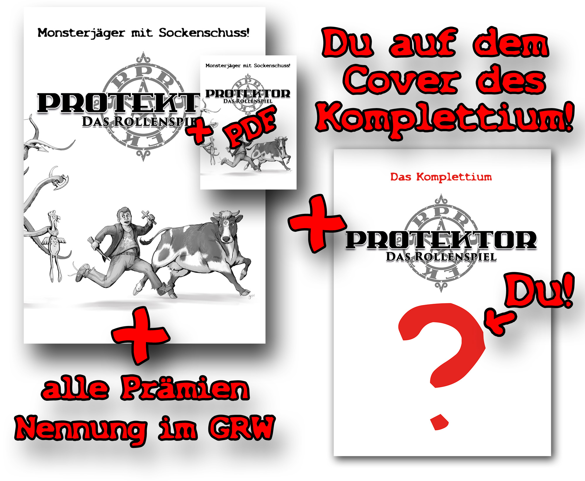 - Poste dieses Foto zusammen mit dem Link www.das-rollenspiel-zu.protektor-das-buch.de in einem Social-Media-Kanal deiner Wahl (Twitter, Facebook, Pinterest, Myspace, WhatsApp-Gruppe deiner Selbsthilfegruppe für Leute, die in zu vielen Whatsapp-Gruppen sind) und schick mir den Link zum Post oder einen Screenshot.