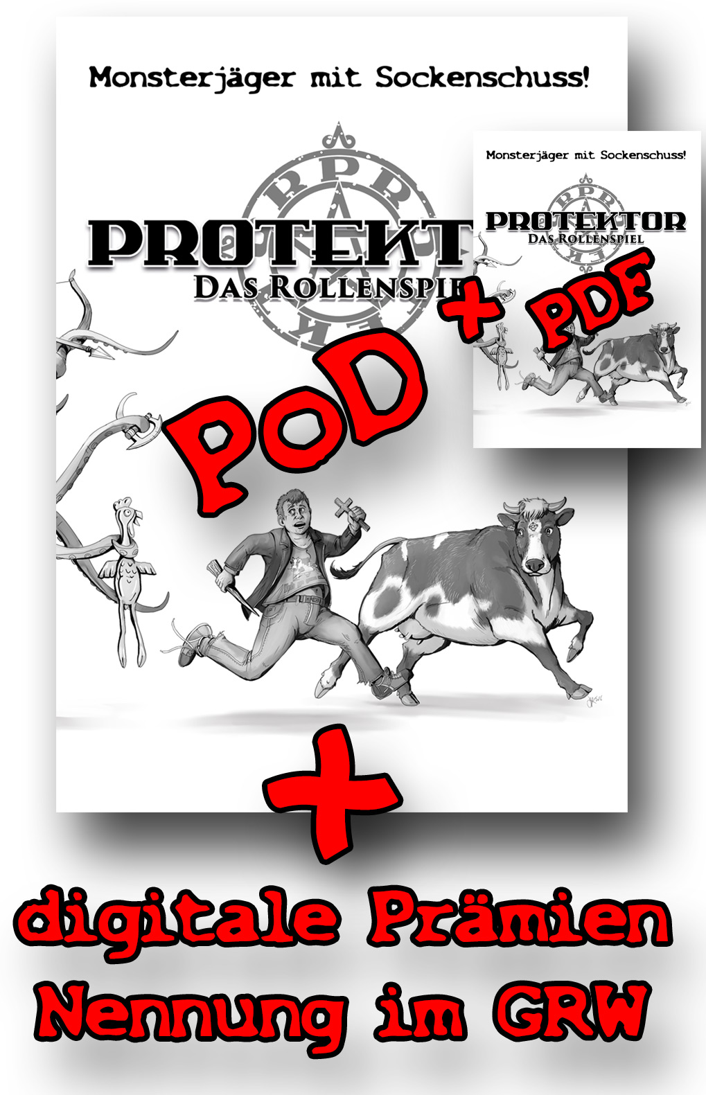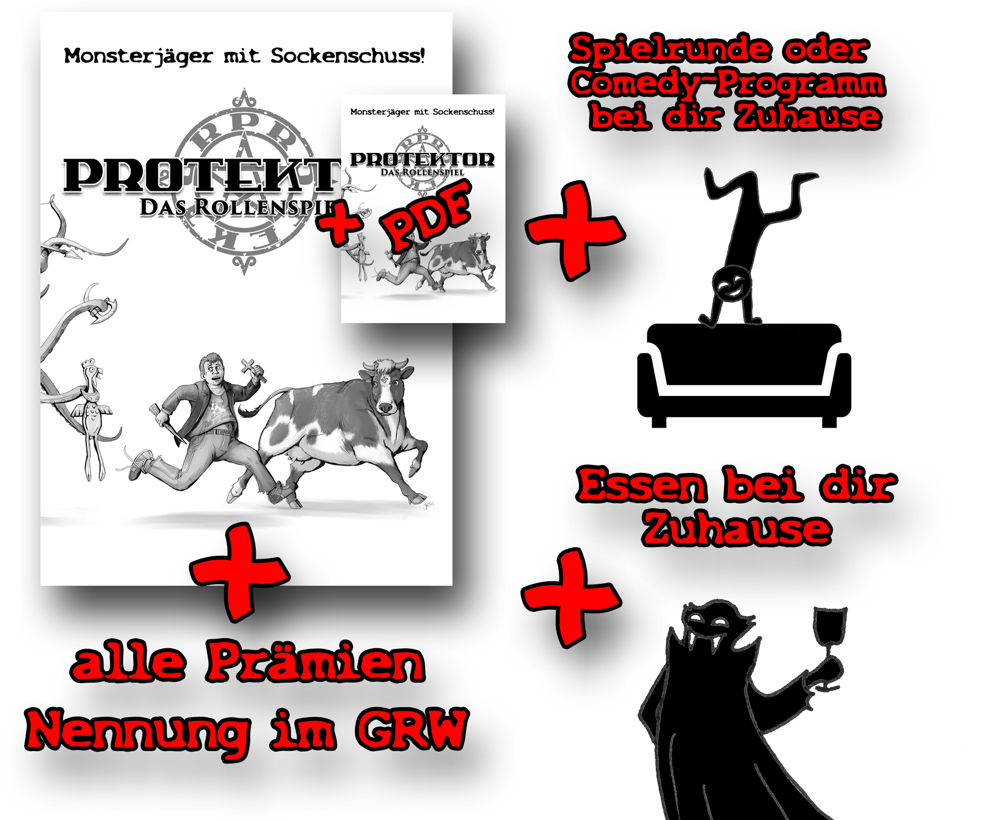 Wedelnde Werwölfe, verbitterte Vampire, schusselige Shoggothen! Das alles und mehr bietet dir Protektor - das Rollenspiel über Monsterjäger mit Sockenschuss.
