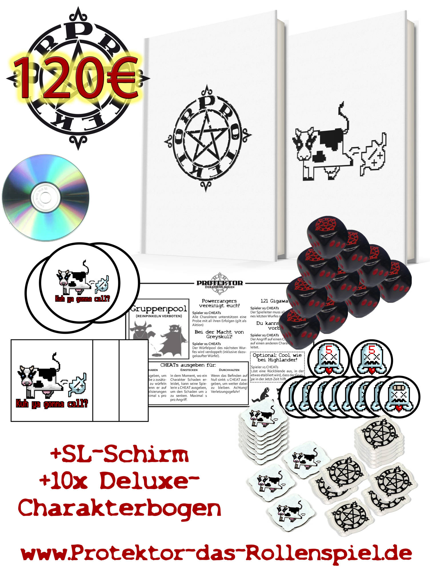 Jeder, der ein Paket von mir (nicht DrivethruRPG) geschickt bekommt, bekommt 5 Protektor-CHEATs dazu. Ab jetzt könnt ihr die Protektor-CHEATs auch als Zusatzprodukt buchen. Wie sie schlussendlich genau aussehen (irgendwas zwischen bedrucktem Plastik und Pokerchips, vielleicht auch Holz) entscheidet sich erst mit der Gesamtzahl der produzierten CHEATs.