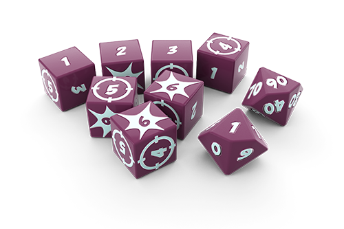 Würfel. Wunderschöne, knallrote Oktopus-PurpurTroubleshooters Würfel. Muss man noch mehr sagen? Naja, vielleicht, dass in diesem Würfetset 7 sechseitige Würfel und 2 Zehnseiter (Zehner und Einer) enthalten sind.
