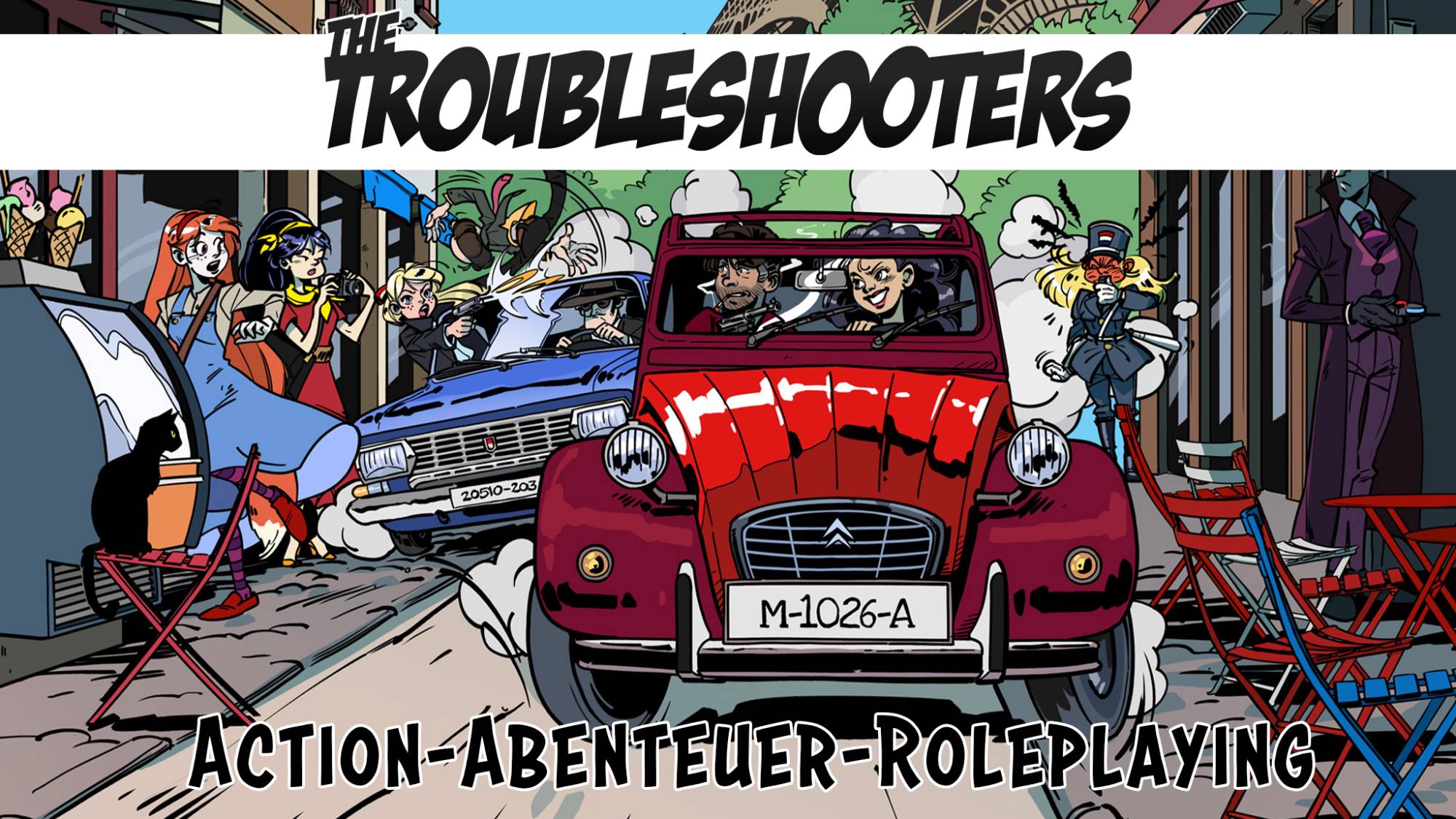 Stell dir eine fantastische Welt der 1960er Jahre vor, geteilt durch den Kalten Krieg, in der böse Organisationen versuchen, die Welt zu übernehmen, und Superspione und Geheimagenten versuchen, sie aufzuhalten, während sie sich gegenseitig bekämpfen. Eine Welt, in der du wie Tim und Struppi um die Welt reist, wie Scooby-Doo abscheuliche Bösewichte entlarvst, wie Nancy Drew Mysterien aufdeckst, wie Carmen Santiago geniale Coups durchziehst und wie Spirou und Fantasio böse Superhirne aufhältst. Das ist die Welt von The Troubleshooters.