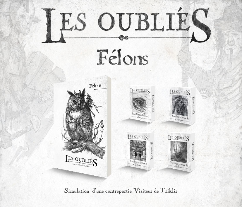 Les decks des sortilèges de base incluent les sortilèges du livre de base Les Oubliés, ainsi que des nouveaux sortilèges de base de Félons. Les sortilèges avancés sont décrits dans le nouveau supplément Félons.