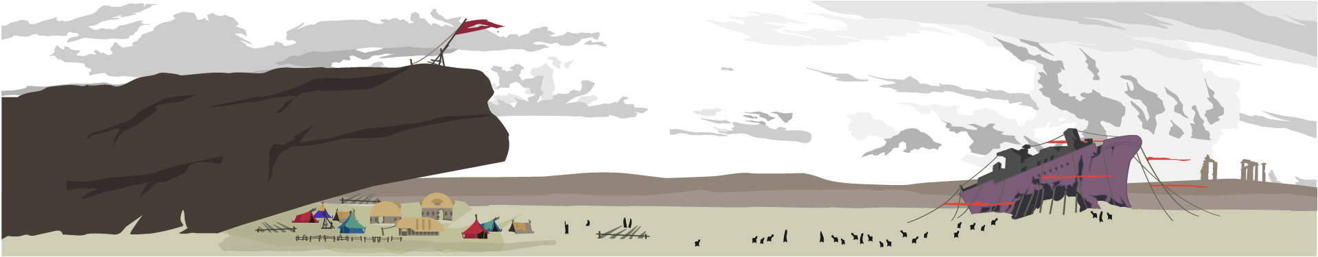 campaign image 14- Ecran du Narrateur : Ecran semi-rigide, trois volets paysage (Format : 63 x 21 cm). Au recto, un panorama du Polskar qui plongera vos Joueurs dans l'ambiance des terres brisées, peint par Sylph, peintre aquarelliste. Au verso, un ensemble de tables et d'aides de jeux pour assister le Narrateur tout au long de son Expédition.
